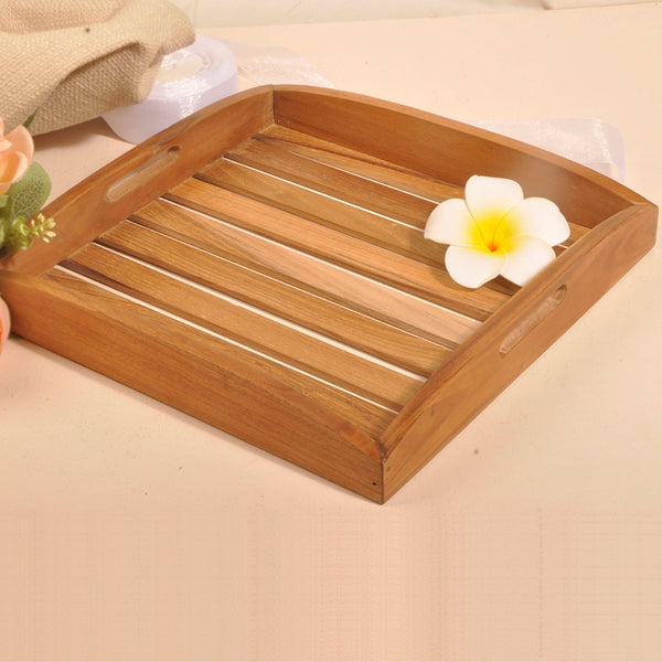 Handcrafted Teakwood Tray with Arch Shape Handle